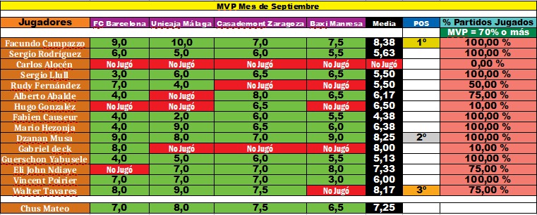 Comenzó una nueva temporada y ya tenemos el primer MVP-EC del mes que premia al mejor jugador del Real Madrid durante septiembre, según las notas establecidas en las votaciones realizadas por los miembros de esta web tras cada encuentro. Este primer galardón del año tiene a Facundo Campazzo como ganador.