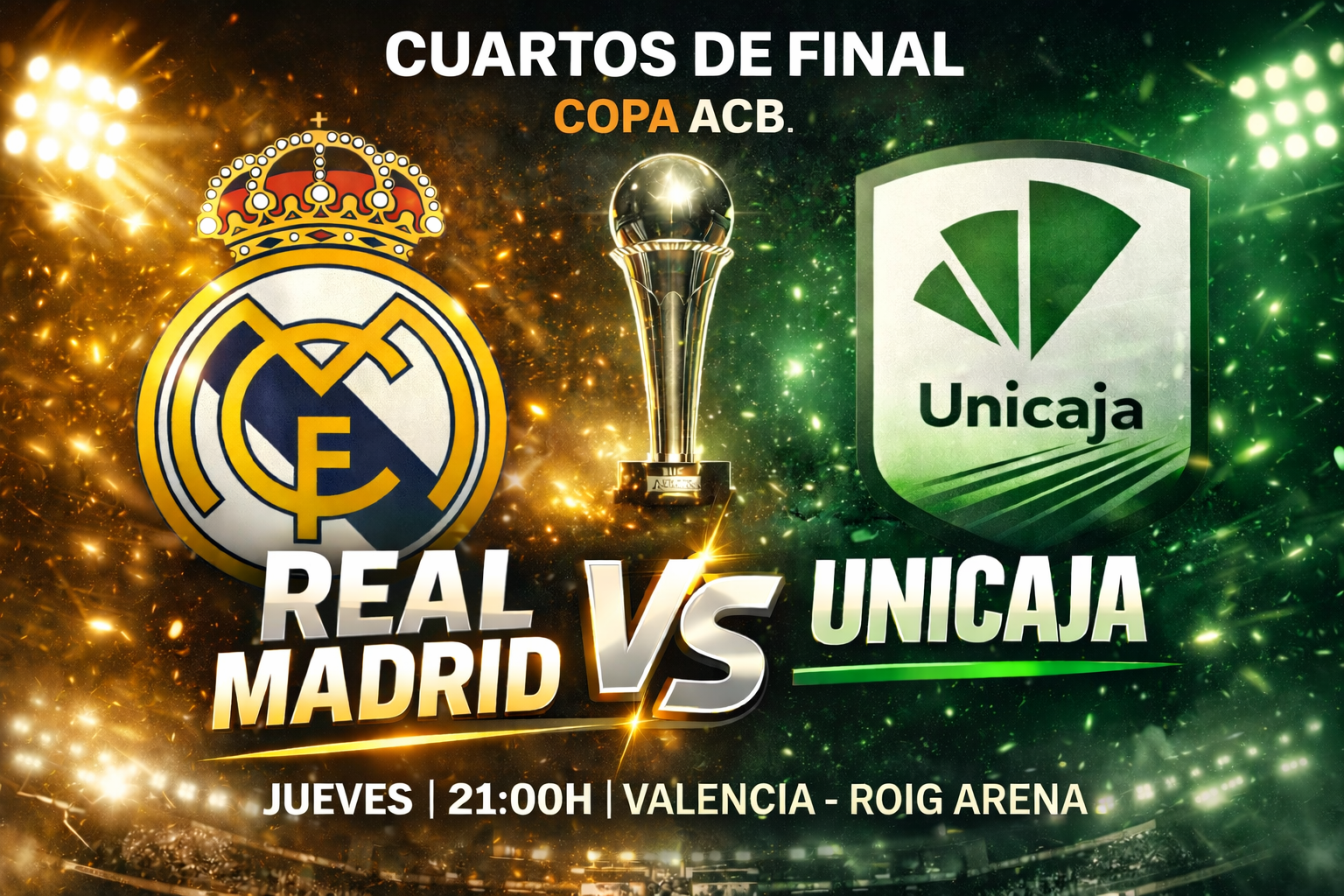 Real Madrid y Unicaja de Málaga se enfrentan mañana a las 21:00 h en el Roig Arena en partido correspondiente a los cuartos de final de la Copa del Rey de Baloncesto. El encuentro se podrá seguir a través de las cámaras de DAZN.