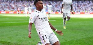 Tuvimos que esperar al minuto setenta y dos para que Rodrygo se manchara el delantal y nos presentara el plato estrella “el imparable”. Jugada espectacular y asistencia a Vinicius que definía como un autentico nueve. Baila Vini, canta y Bernabéu y todos contentos. Pero quedaba rematar el planto principal y Rodrygo estaba desatado, así que un minuto antes de que llegará el noventa, el brasileño decidió deleitar al estadio con una jugada marca de la casa. Velocidad, desborde y disparo. Hasta cuatro rivales sortea Goes para marcar el tercero de la tarde.