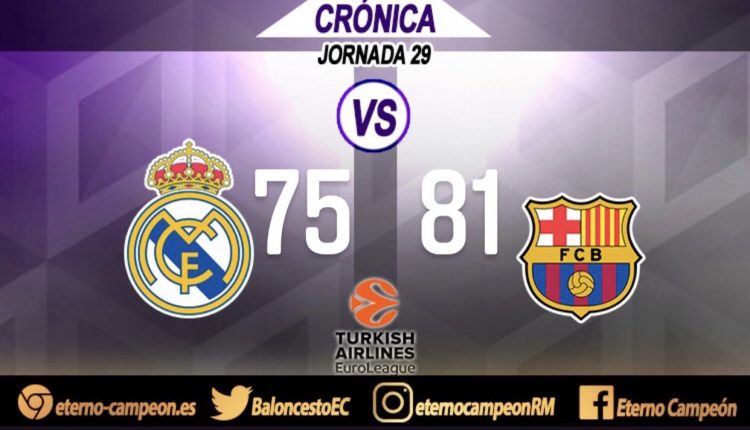 El último y definitivo cuarto se inicia con triple de Jaycee Carroll con una buena dirección de Laprovittola y Edy y Deck realizando buenas defensas y tomando ventaja en el marcador 3 arriba a falta de 7 minutos. Minutos de intercambios de canastas y tablas en el luminoso a falta de 4:30 para el final ante la igualdad anotadora 2 buenos ataques del Barcelona les permiten coger ventaja, que aunque mínima, debe atajar el equipo de Laso tras el tiempo muerto, pero los últimos minutos las buenas defensas del Madrid son insuficientes tras ataques poco fluidos a falta de 55” 5 arriba 72/77, el ADN blanco no tira nunca la toalla y sigue luchando por la victoria pero el acierto desde le TL sentencia el partido. Resultado final: 76 – 81Parcial: 22/24 .