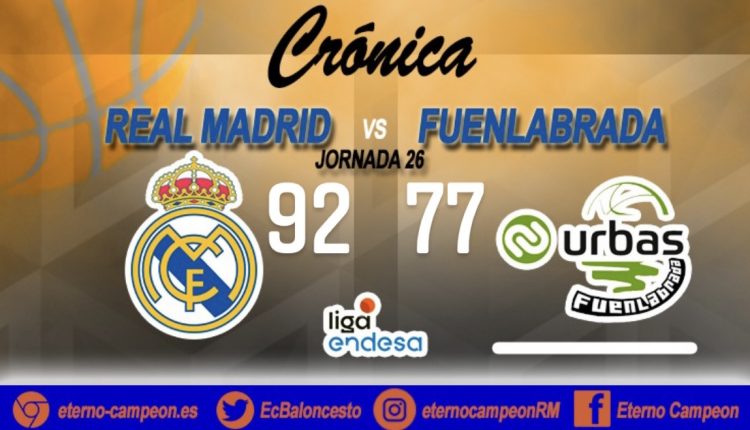 Primer cuarto. Prácticamente dos minutos iniciales muy buenos del Real Madrid (8-2), con 6 puntos de Deck. Para el partido Urbas Fuenlabrada. A la vuelta del tiempo muerto, el equipo visitante anota un parcial de 0-6(11-8). Le toca a Pablo Laso parar el partido cuando, por primera vez en el partido, Fuenlabrada se pone por delante(13-14), faltan 4:07. Laso pide verticalidad en el discurso.Dos acciones de Yabusele y un triple de Heurtel ponen el 19-14. Faltan 2:02, segunda falta de Tavares, entra Poirier. Ristic, con 4 puntos seguidos, volvía a acercarles(22-18). Acaba el cuarto con un tapón de Poirier.