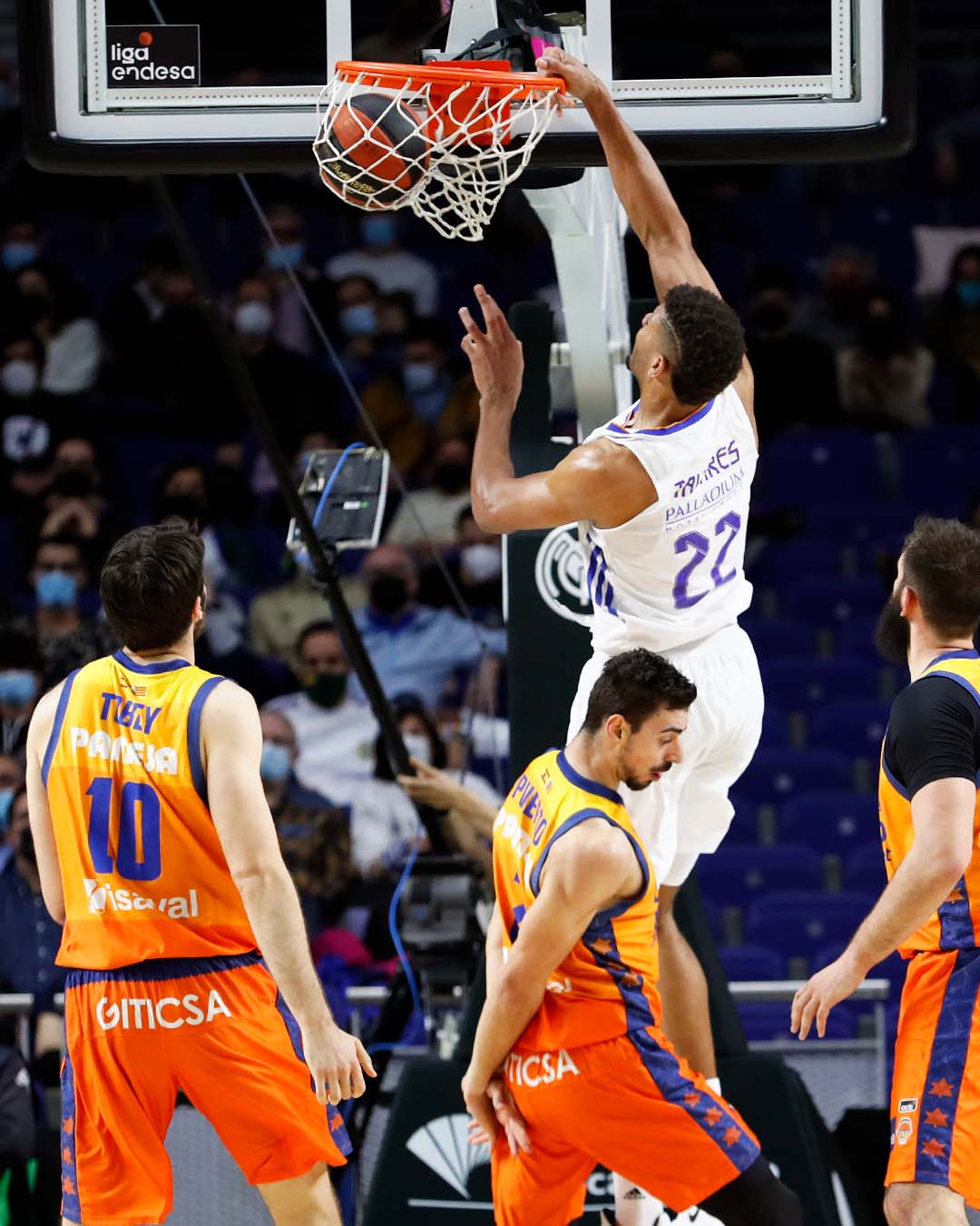 En esos últimos minutos el Valencia estuvo más intenso y una gran jugada de Rivero acabo en 2+1 y sendos fallos incomprensibles de Heurtel y Tavares condenaron a los blancos (90-94). Pero Llull con un triple daba un pequeño hilo de esperanza al que agarrarse, sobre todo cuando Arostegui fallo el primer tiro libre, tras una falta rápida. Tiro a fallar el segundo y además ganaron la posesión. Con 9 decimas y el balón contra el cuerpo de Tavares, el caboverdiano tiro sin mucha fe desde su campo y estuvo cerca de entrar. Habría sido apoteósico si lo hubiera metido. Finalmente, victoria del Valencia por 93-94.