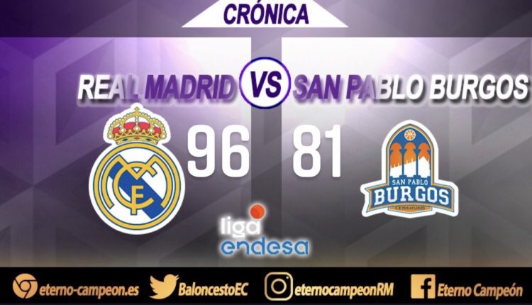 Cómoda victoria del Real Madrid en la visita de Hereda San Pablo Burgos por 96-81. Los de Laso consiguieron una ventaja de 16 puntos en el primer cuarto y supieron mantenerla hasta el final. El conjunto burgalés tuvo buenos minutos, pero no fueron suficientes para poner en aprietos serios a los hoy locales. El Real Madrid, de esta manera, prolonga sus buenos registros en Liga ACB.
