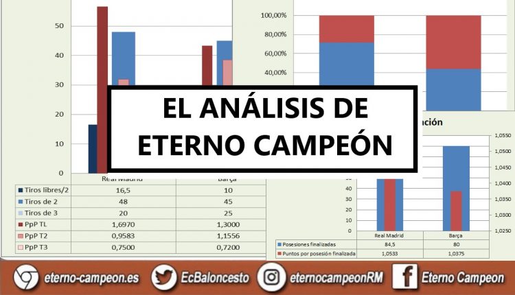 Los azulgranas finalizaron 0,5 posesiones más, lo que ha supuesto 1 punto de diferencia. Anotaron 1,2267 puntos por posesión finalizada, por 1,1544 de los blancos. Son 0,0723 puntos más por posesión finalizada, que se han traducido en 5 puntos.