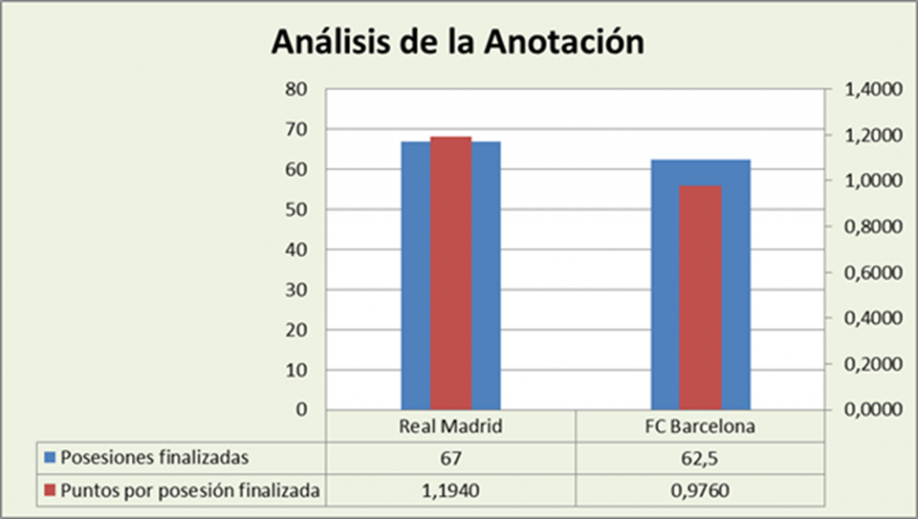 Análisis de la anotación Real Madrid-FC Barcelona Posesiones finalizadas y Puntos por posesión finalizada