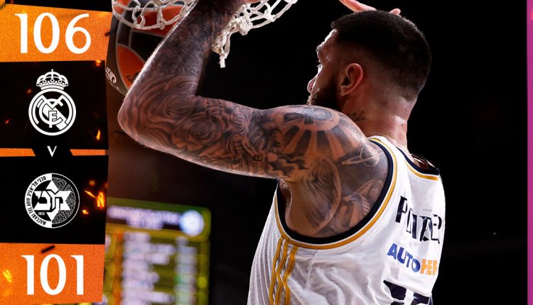 El Madrid recupera la senda de la victoria y vence por 106-101 al Maccabi. Partido de altísima anotación en el que los blancos pese al cansancio del calendario necesitaban ganar para recuperar sensaciones y vaya si lo hicieron. Poirier se desempeñó bien contra Nebo, un pívot peligroso jugando por encima del aro, el pívot madridista cuajo un gran partido con 16 puntos y 10 rebotes, a su lado Musa y Hezonja y la aportación de Yabusele y Causeur en la segunda parte. También Rudy disputo muchos minutos, porque hay partido también el jueves.