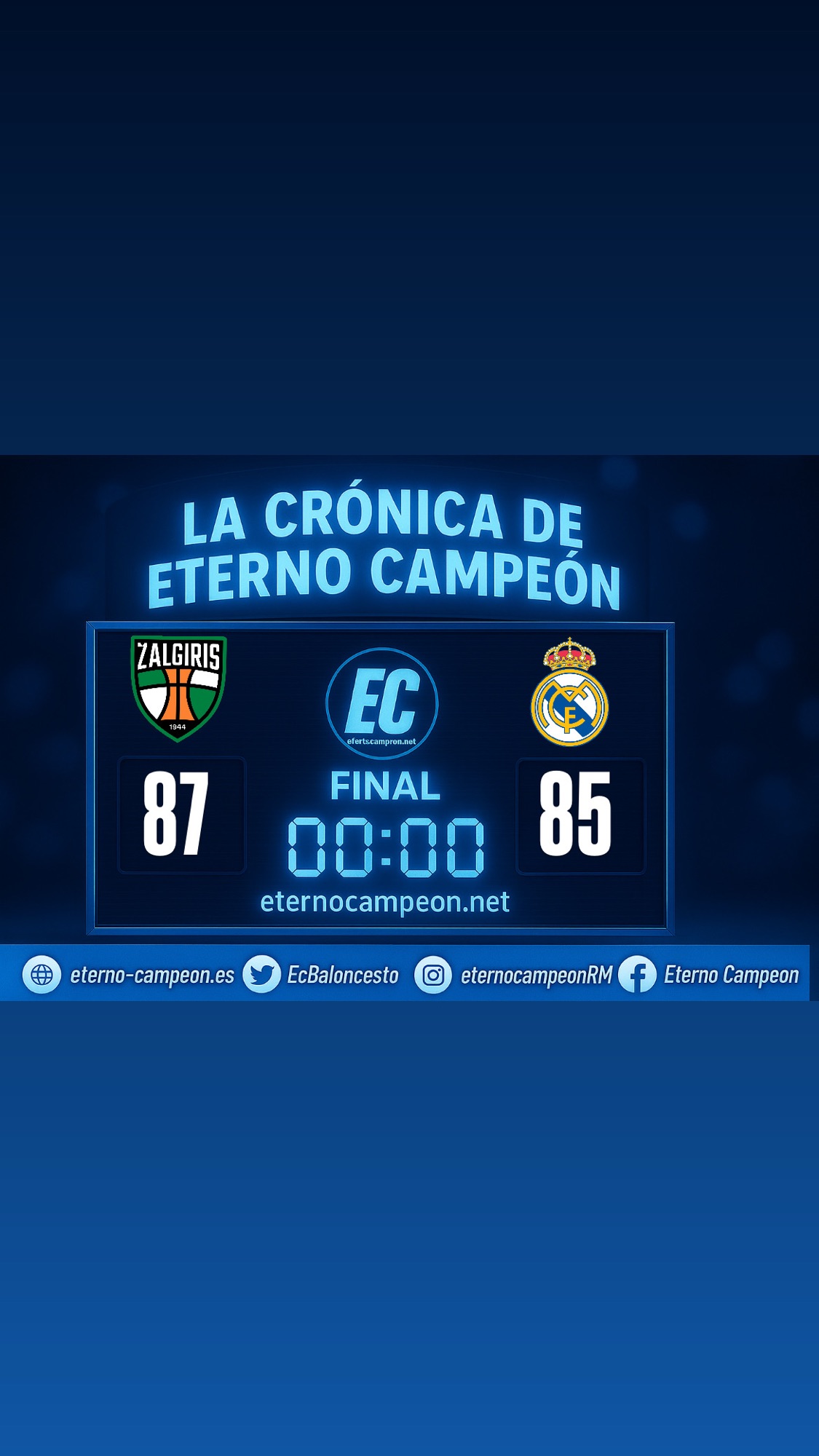 El Real Madrid no consiguió ganar en Kaunas a pesar de ir la mayor tiempo del partido por delante en el marcador, pero los minutos finales lastraron el esfuerzo del equipo. Aún así, los madridistas siguen en la pelea por ser top 4 y el duelo de la próxima semana contra Hapoel, sin público, es decisivo. Edy Tavares con 12 puntos y 10 rebotes para 25 de valoración, MVP.