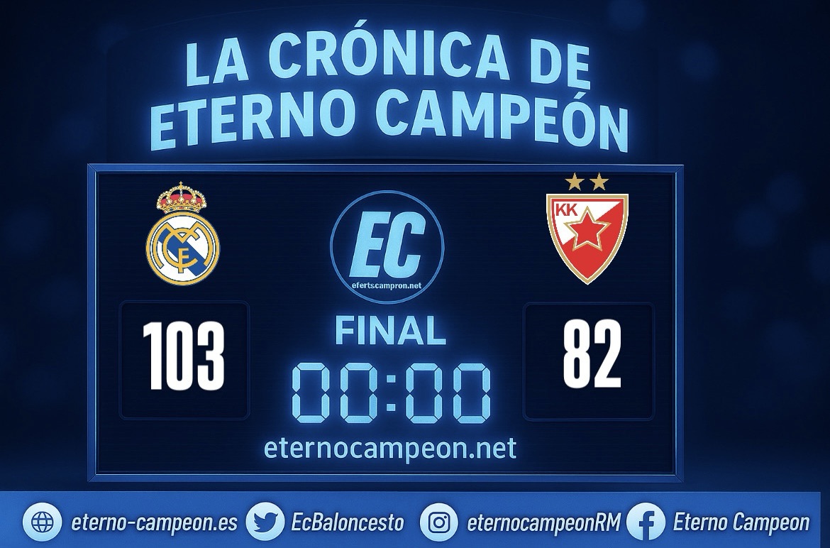 El Real Madrid llegaba a la última jornada de la fase regular de la Euroliga, con el único objetivo de certificar el factor cancha en los Playoffs, en un duelo en casa contra el equipo serbio, y se consiguió de una manera muy solvente. El Facu Campazzo con 16 puntos, 8 asistencias y 3 robos para 21 de valoración, MVP.