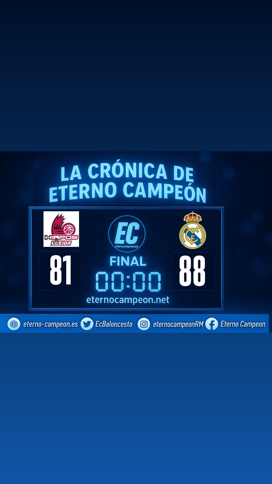 El Madrid se impuso al Lleida por 81-88 en un partido que tuvo 2 cuartos para cada equipo. El segundo y el tercero favorecieron al Hiopos Lleida, mientras que el Real Madrid dominó con claridad el primero y el último. Esa combinación permitió a los locales competir hasta el final ante un Madrid serio y sólido en los momentos clave. El resultado final, 81-88, reflejó esa alternancia. Los blancos mantienen el liderato de la Liga Endesa y llegarán líderes al parón navideño.