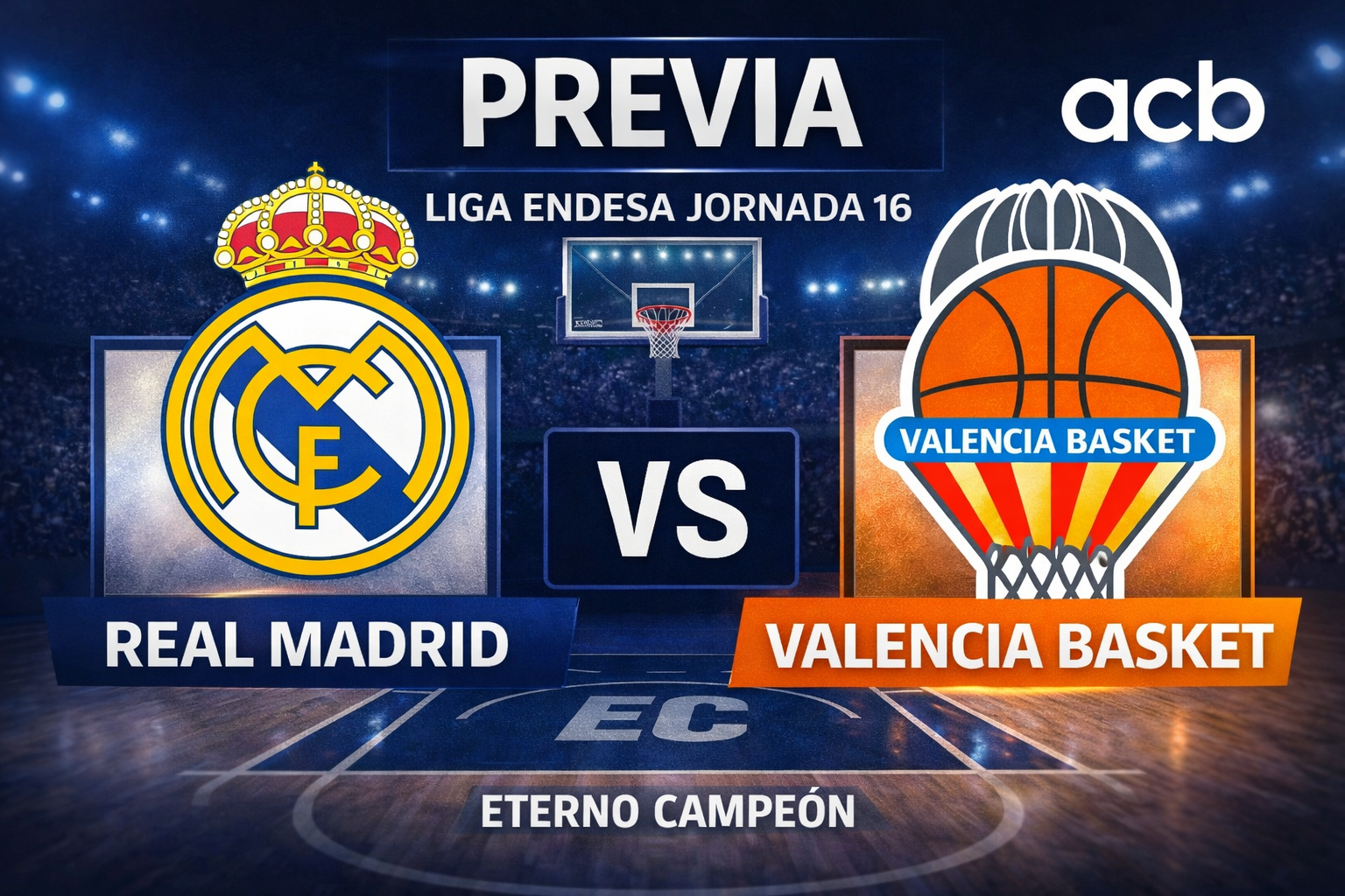 La jornada 16 de la Liga Endesa 2025-26 trae uno de los partidos más atractivos del año: Real Madrid, líder de la competición, recibe a Valencia Basket, su inmediato perseguidor, en un auténtico clásico moderno del baloncesto español.