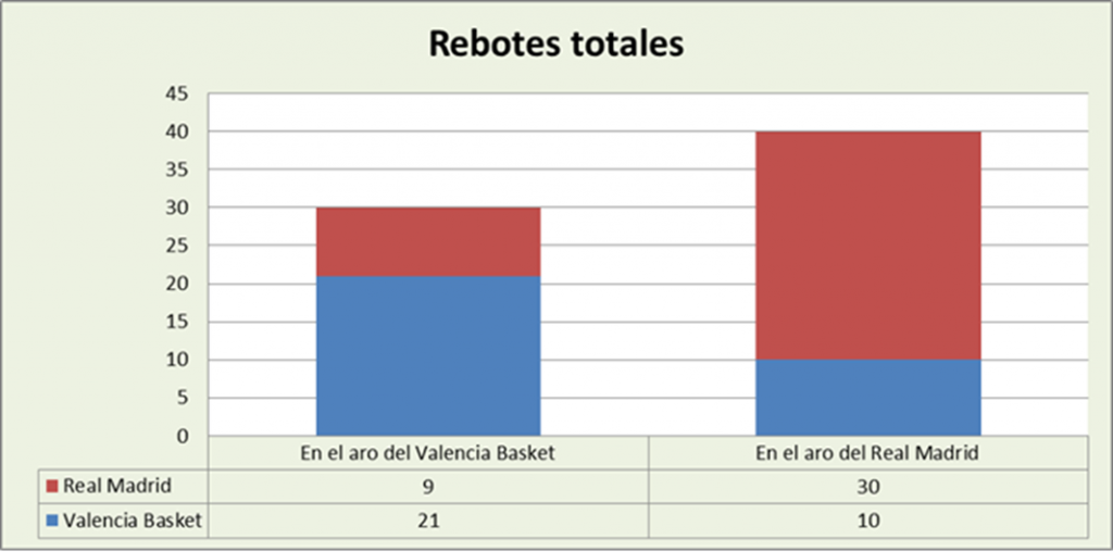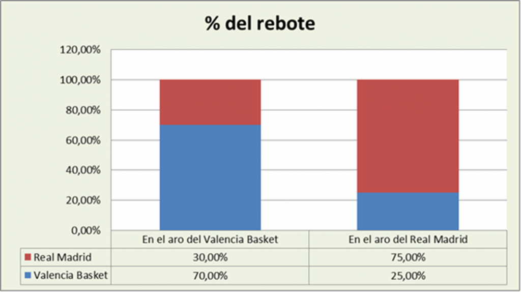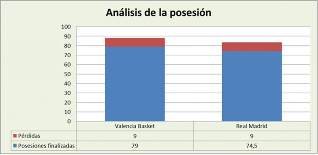 Valencia ganó la posesión, no fue por el rebote, ya que sólo capturó un rechace ofensivo más que el Real Madrid, sino por otros factores del juego (tiros adicionales, últimas posesiones de cuarto…).