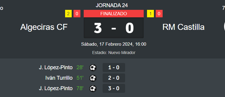 El Real Madrid Castilla se queda sin ideas y vuelve a caer en Algeciras (3-0). Jornada 24 de la Primera Federación 2023/24.