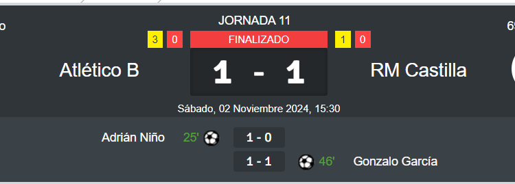 Jornada 11 del Grupo 2 de la Primera Federación 2024/25. Todos los datos que debes saber sobre los partidos del Castilla, recopilados en EC.