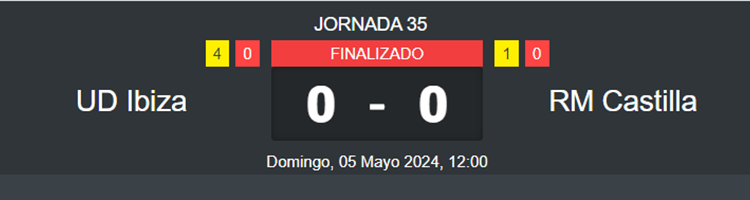 El Real Madrid Castilla deja la puerta a cero y suma ante un candidato al ascenso como el Ibiza, acercándose más a la permanencia matemática (0-0) y al ascenso del Real Madrid C. Jornada 35 de la Primera Federación 2023/24.