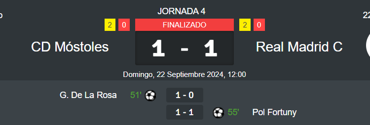 El Real Madrid C suma su 3º punto de la temporada en su tercer empate consecutivo, ante el Móstoles (1-1) a domicilio.