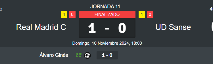 El Real Madrid C se lleva un partido disputado con un gol de Álvaro Ginés ante el Sanse, consiguiendo su segunda victoria de la temporada (1-0).