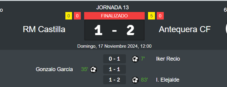 - Ninguno por parte del Castilla.