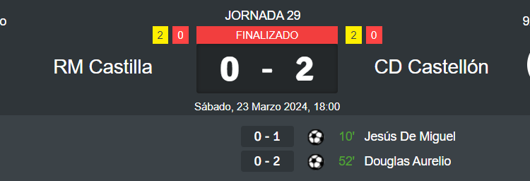 - 2 por parte del Castilla. Amarillas a Marvel y Asencio.