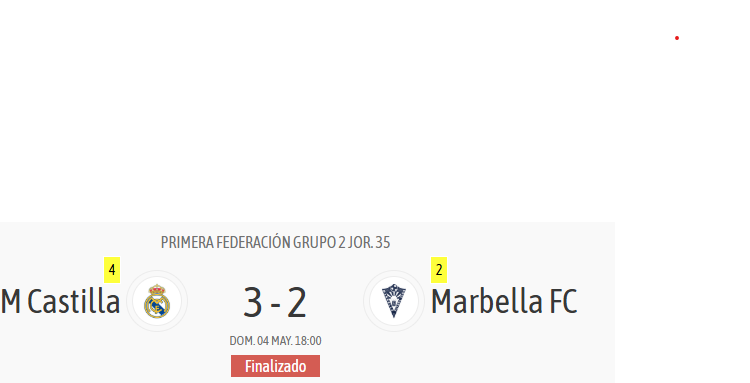 - Real Madrid Castilla: 10º en Primera Federación 2023/24, Grupo 2. A 11 puntos de playoffs, a 9 del descenso.