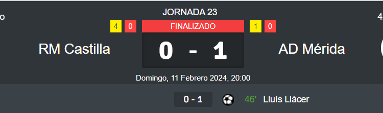 El Real Madrid Castilla toca fondo y cae desubicado ante el Mérida (0-1). Jornada 23 de la Primera Federación 2023/24.