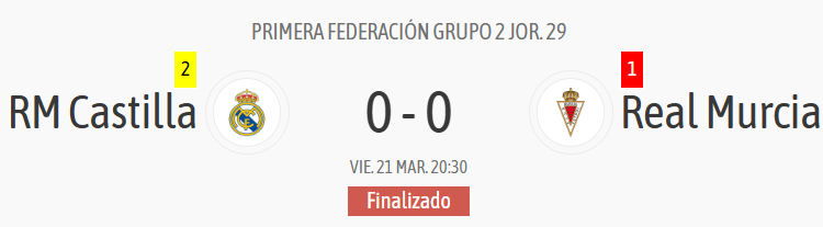 El Castilla tuvo sus ocasiones, algunas muy claras, pero también el Real Murcia, salvando ambos porteros y concluyendo con el 0-0 inicial.