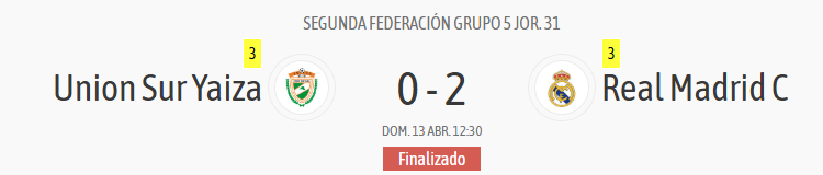 - 3 por parte del Real Madrid C: amarillas a Ferrán Quetglas, Álvaro Ginés y Melvin Ukpeigbe.