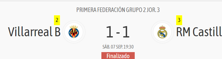 Jornada 3 del Grupo 2 de la Primera Federación 2024/25. Todos los datos que debes saber sobre los partidos del Castilla, recopilados en EC.