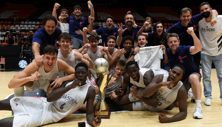 A principios de junio le tocaba disputar esta Euroliga Júnior y lo tenían que hacer muy limitados. Las bajas se cebaron con los blancos, que incluso acudieron a Valencia sin el entrenador. Una vez comenzado el campeonato, Pablo Laso llamó a filas a Juan Núñez y Miguel Ángel López-Palacios perdía a uno de sus mejores jugadores. Aun así, se repusieron a todas las dificultades y conquistaron el título con un gran Eli John Ndiaye tras vencer en un igualado partido al FC Barcelona.