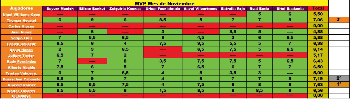 Tenemos un nuevo ganador del premio MVP-EC al mejor jugador del mes en el Real Madrid. Vincent Poirier obtiene, por su gran mes de noviembre, el galardón al más valorado por la redacción de esta web. Es la primera vez que el francés se alza con este premio individual.